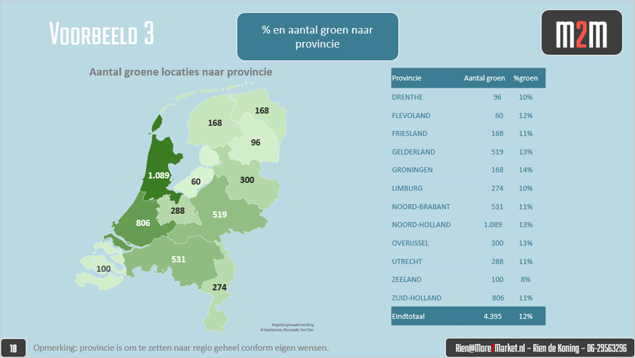 Vanzelfsprekend is ook een regionale indeling van belang, die verfijnd kan worden tot elk gewenst postcodeniveau. Hierbij is een top-3 in gebieden te herkennen: